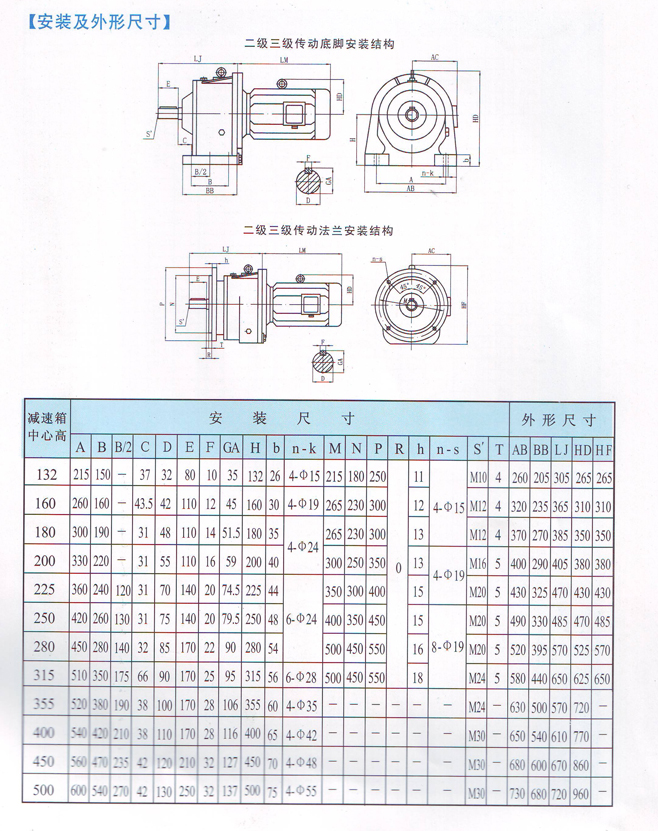 YCJ系列斜齒輪減速電機(jī)部分安裝尺寸如下,如需具體參數(shù)尺寸,請(qǐng)電話咨詢我公司技術(shù)部,我們將提供詳盡的服務(wù):